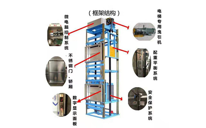 產品是自身鋼架結構,自帶機房,所以對井道壁沒有特殊要求,也無須越層另設機房,本電梯具有占地面小、噪音低、耗能低、使用方便快捷,安裝維修方便等優點。